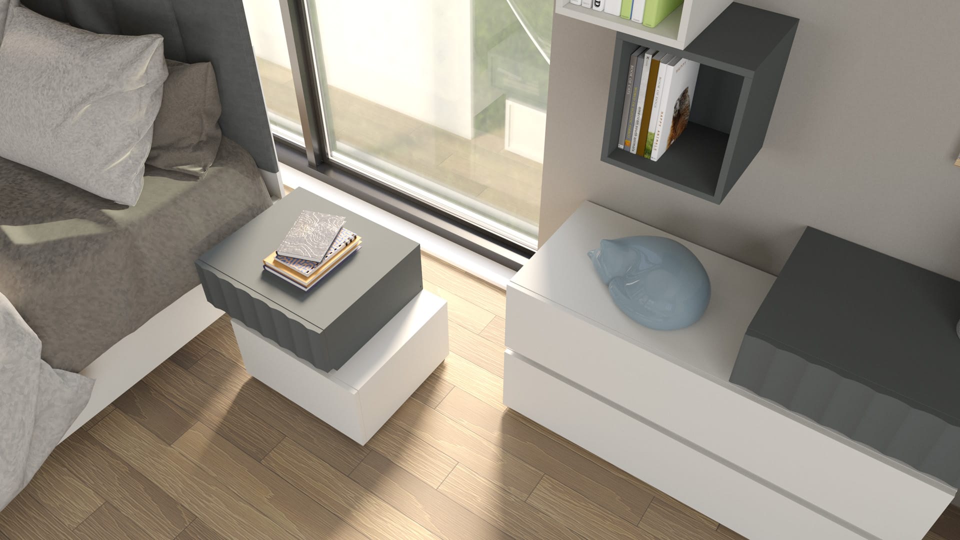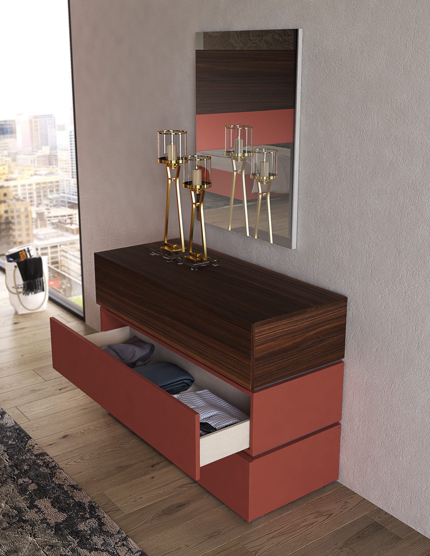 Un incontro di materie e sensazioni. Il colore, con la sua energia mutevole, veste le superfici di personalità; il legno, con il suo calore discreto, interviene come un dettaglio prezioso, capace di ammorbidire le geometrie e di aggiungere profondità visiva.