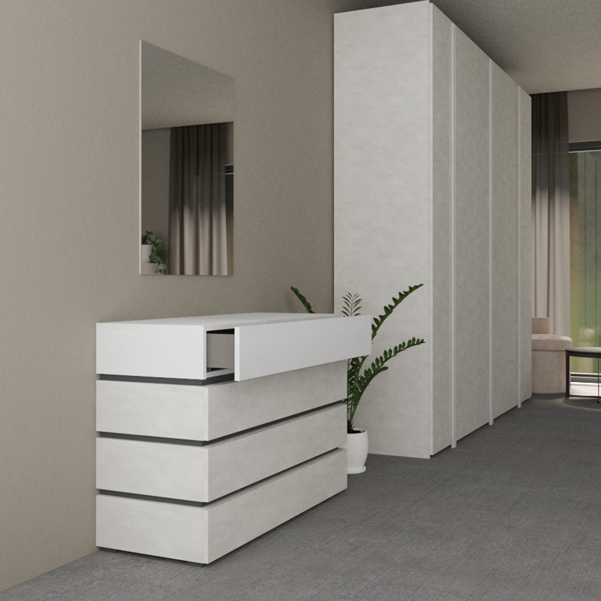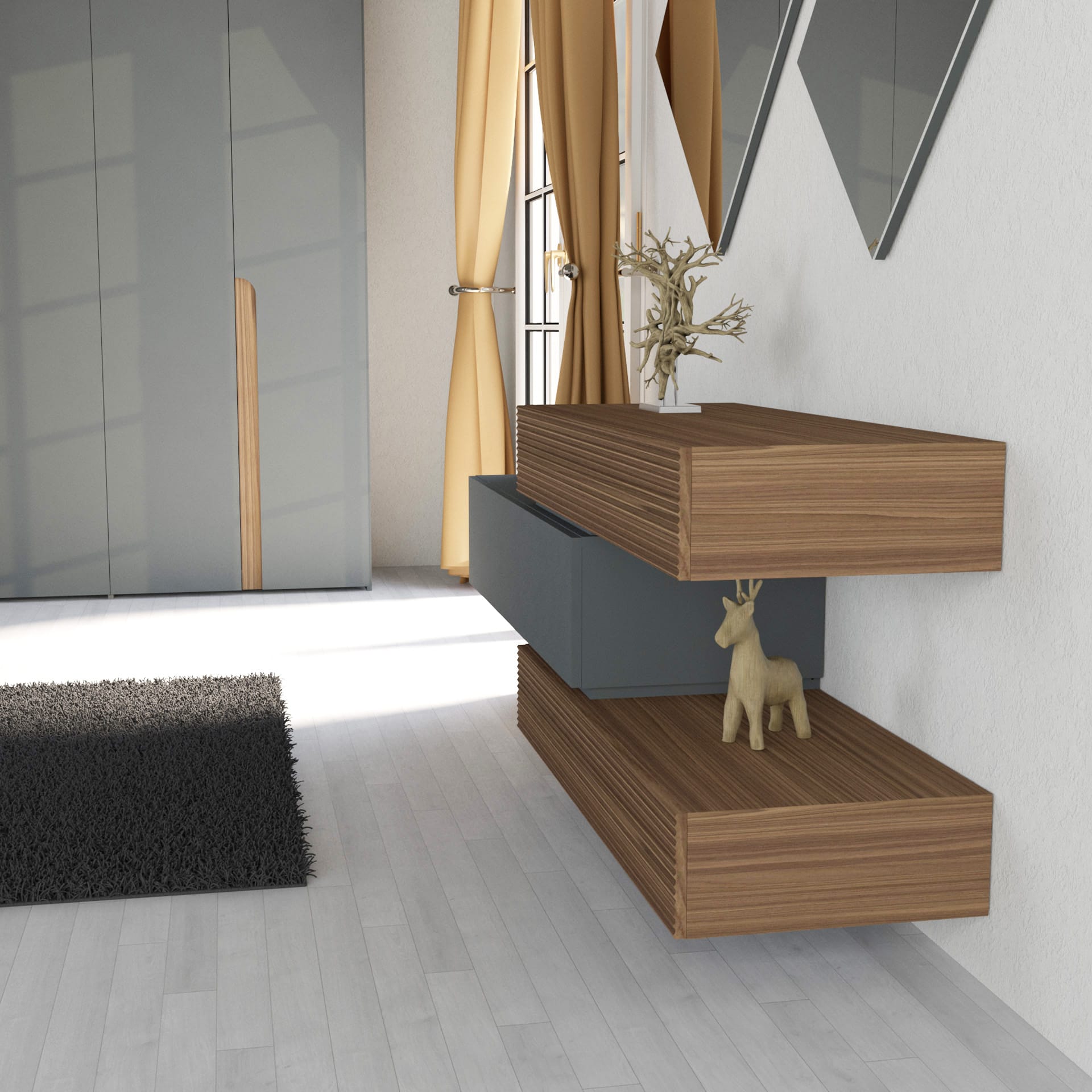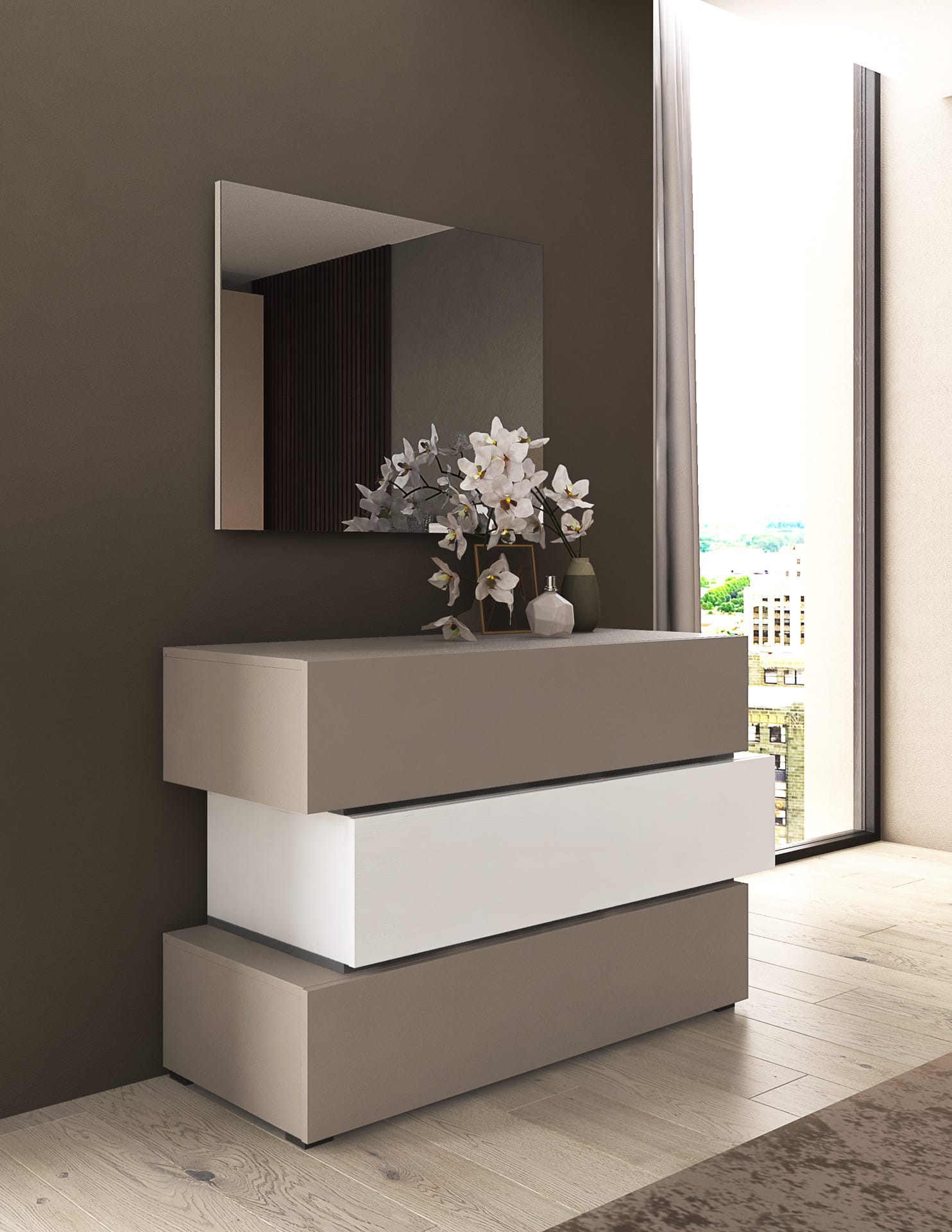 Un canto di forme e colori che danza nello spazio, dove il laccato si trasforma in emozione e le geometrie disegnano armonie segrete. Ogni tonalità, dai toni più delicati a quelli più intensi, sussurra storie di carattere e personalità, vestendo i moduli con un’anima viva e vibrante.