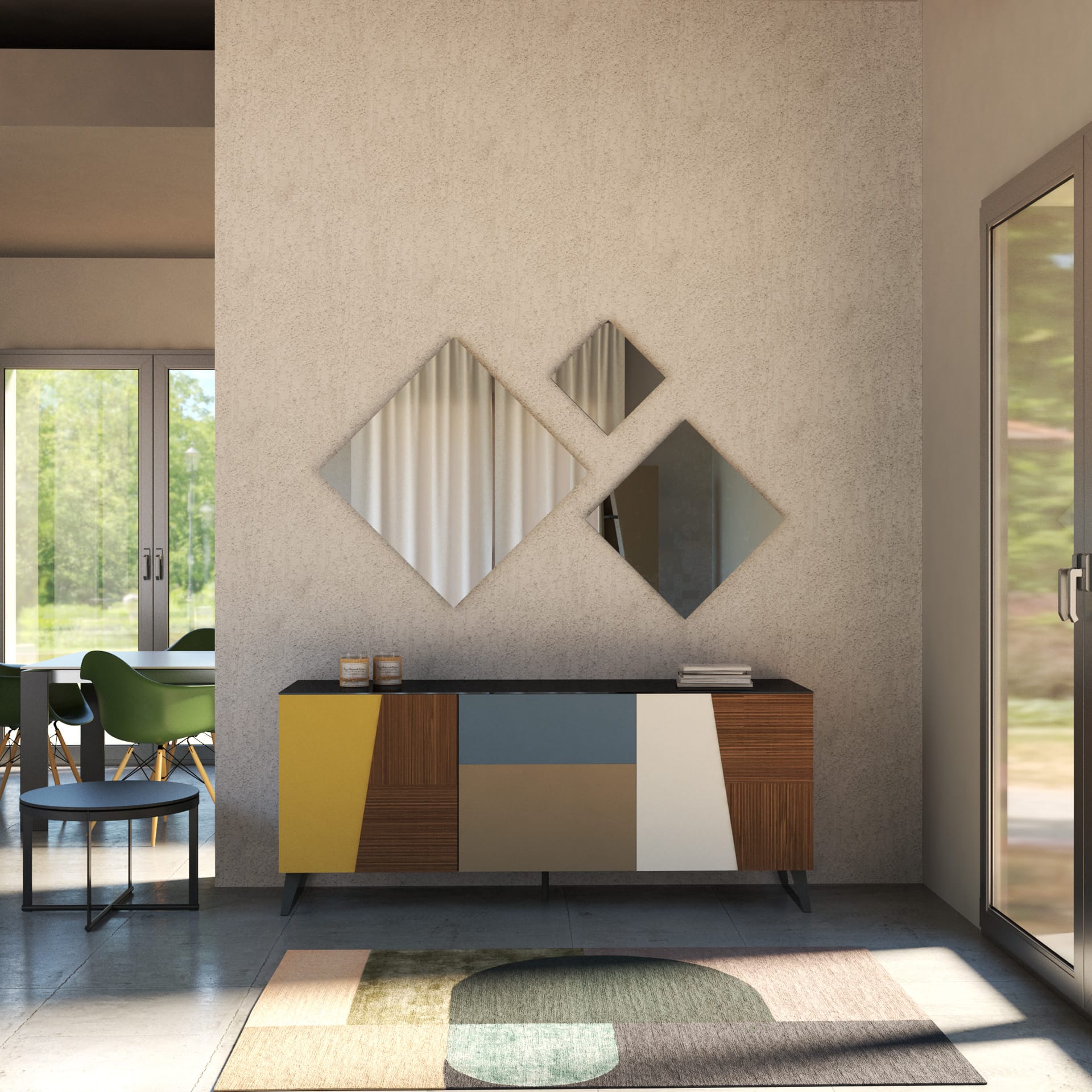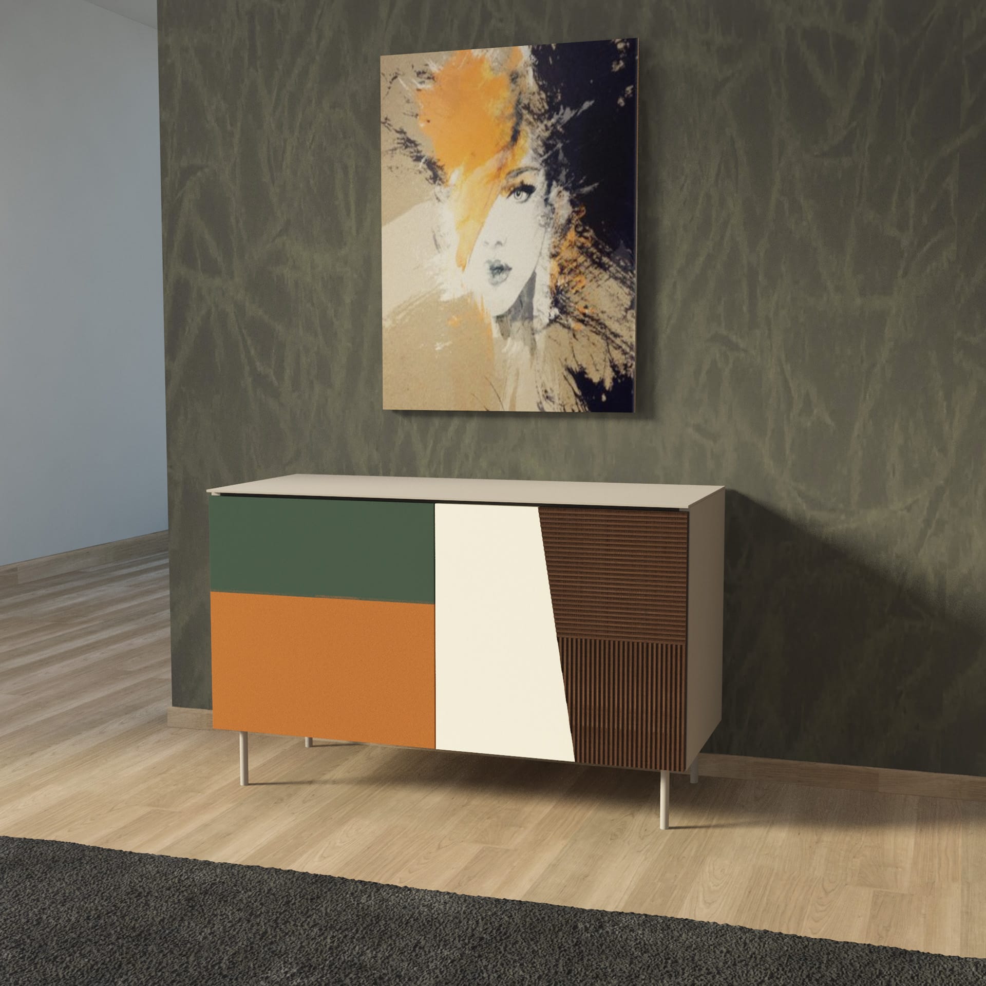 multicolore verde zeus/arancio/avorio laccato opaco e rovere scuro