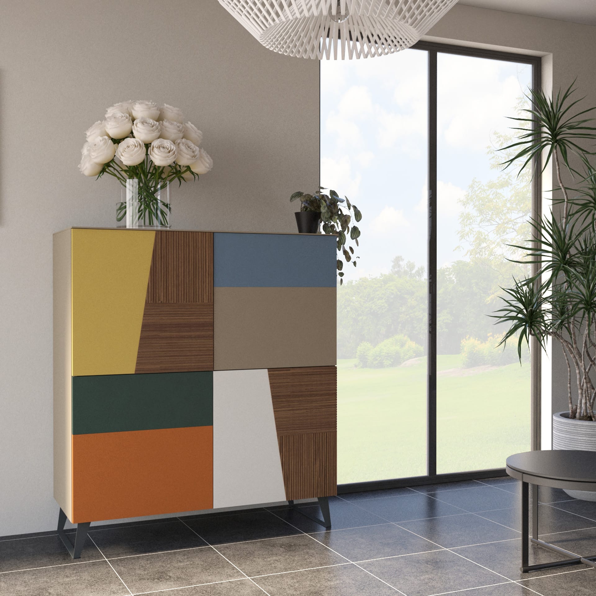 ocra/azzurro/visone/verde zeus/arancio/avorio laccato opaco e noce