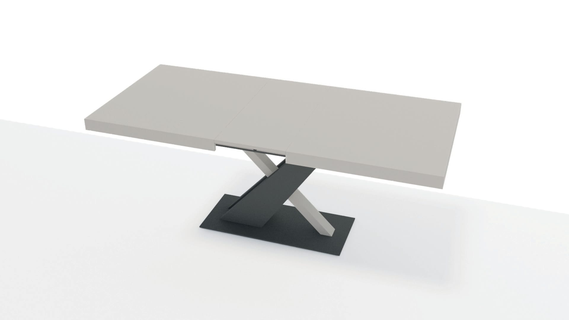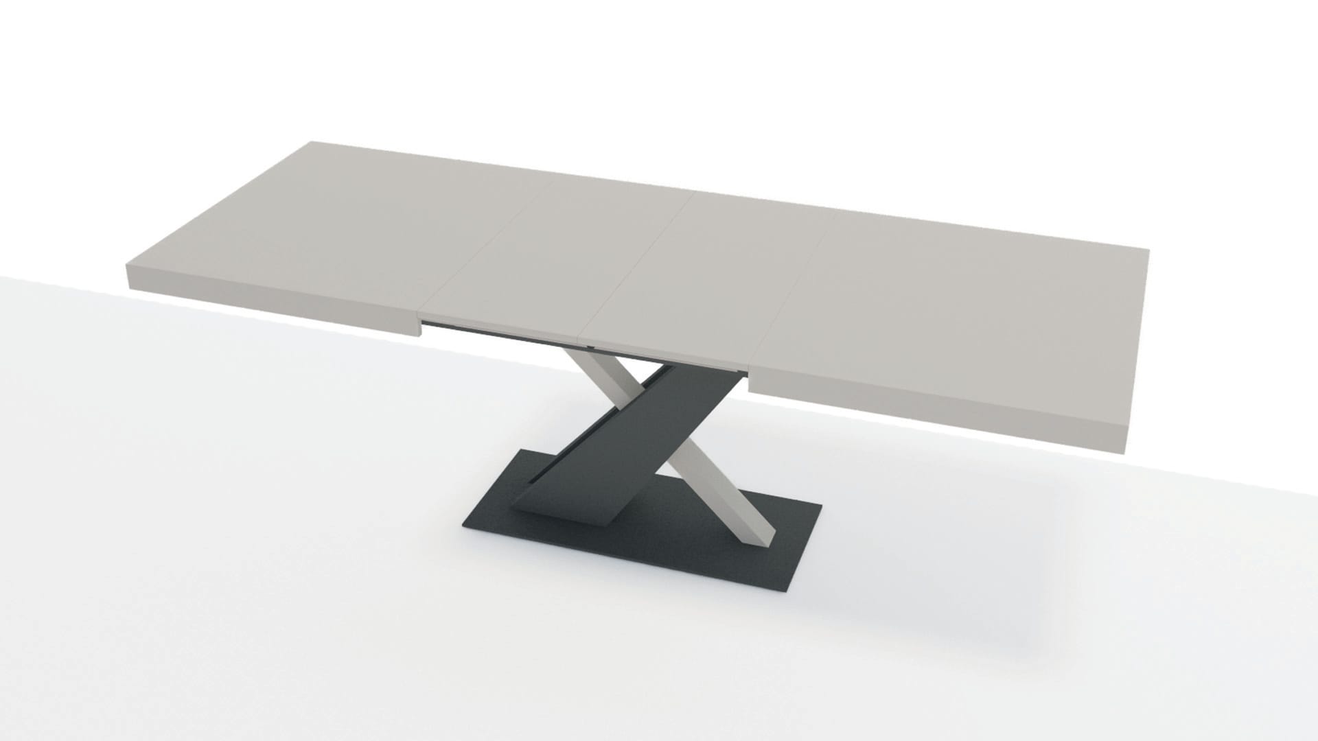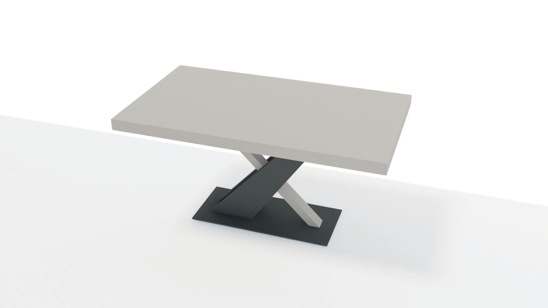 La base in laccato antracite disegna un incrocio grafico essenziale, segno distintivo della sua identità.